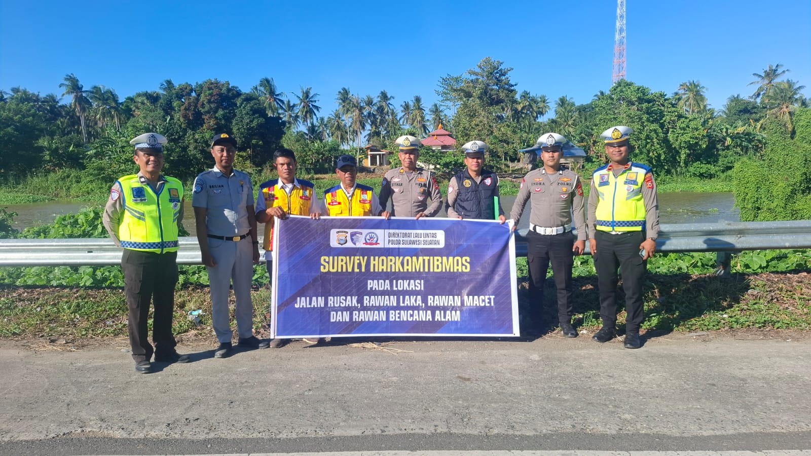 Mengantisipasi terjadinya kecelakaan lalu lintas, Satlantas Polres Bone bersama tim dari Subdit Kamsel Ditlantas Polda Sulsel melakukan survey terhadap kondisi jalan rusak, Selasa (14/4/2026).
