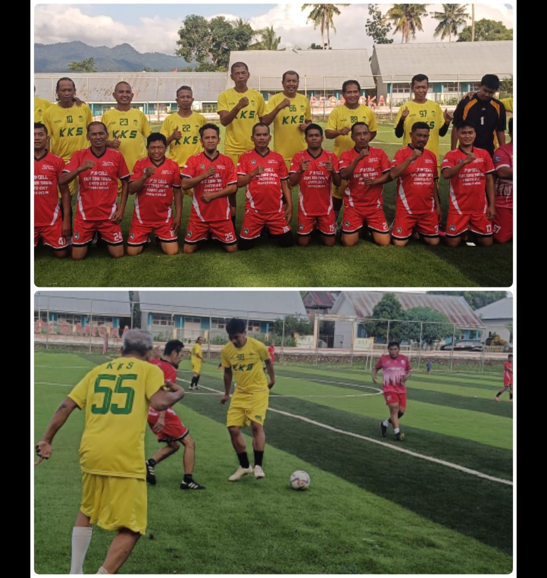 Laga persahabatan ini di lapangan sepakbola sintetis Bakunge Desa Mappesangka Kecamatan Ponre Kabupaten Bone Sulsel, Jumat, 17 April 2026. Kesebelasan KKS Makassar tampil solid karena dihuni mantan pemain PSM Makassar Hamdi Hamzah.