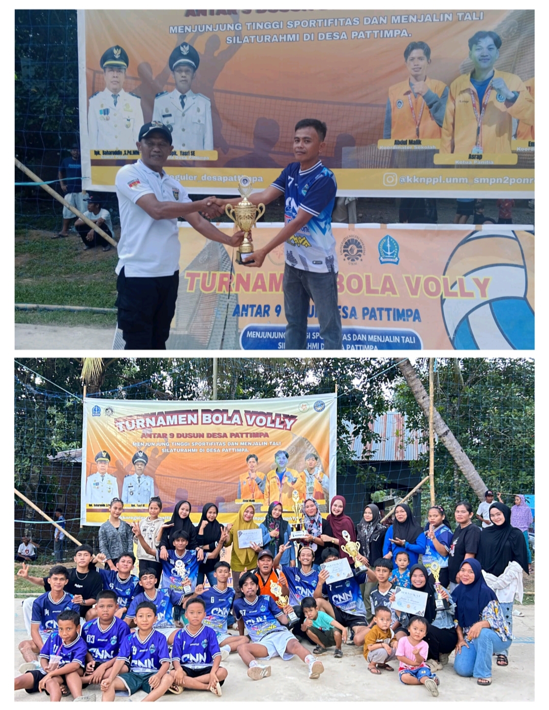 Turnamen bola voli ini diselenggarakan oleh mahasiswa KKN Universitas Negeri Makassar (UNM) posko Desa Pattimpa yang berlangsung selama satu pekan dengan diikuti peserta Putra/Putri dari masing-masing dusun se Desa Pattimpa.