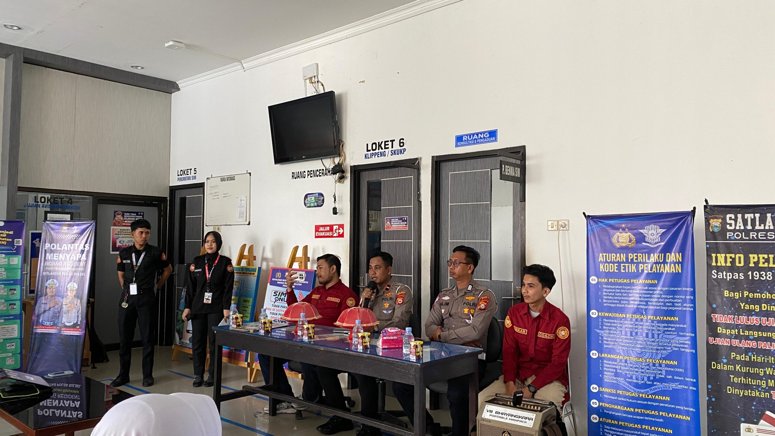 Kegiatan ini dipimpin Kanit Kamsel Satlantas Polres Bone IPDA Chandra Wijaya, dilaksanakan di ruang tunggu pelayanan SIM Polres Bone.