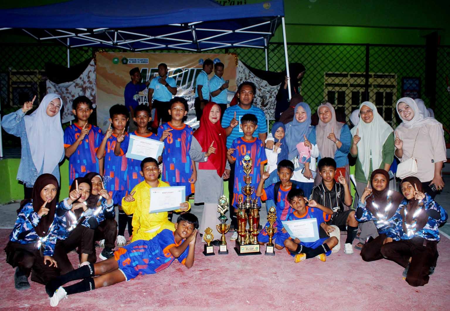 Sebagai penutup rangkaian kegiatan, kepala sekolah bersama guru pembina dan seluruh murid peserta AFJ Cup VII mengabadikan momen kemenangan dengan penuh suka cita. Suasana kebersamaan dan euforia kemenangan tampak mewarnai perayaan tersebut.