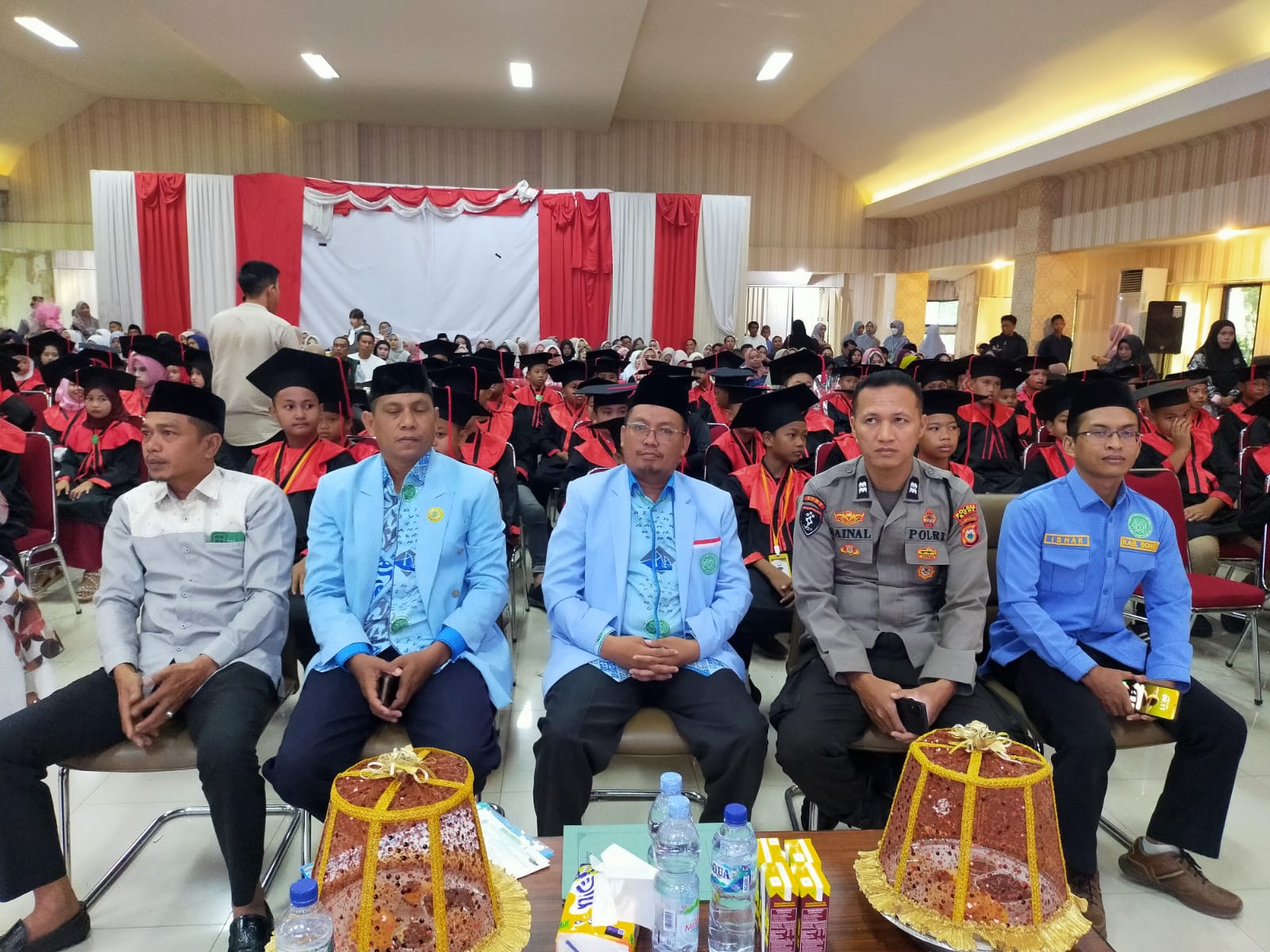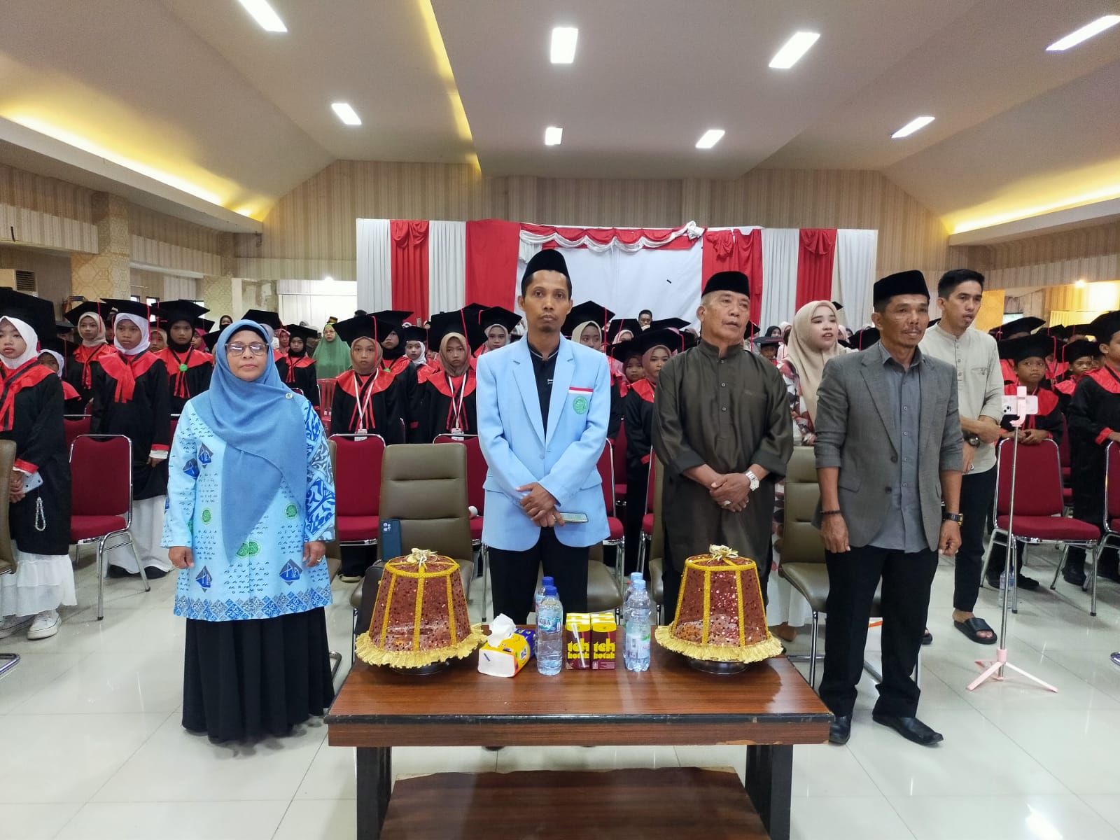Acara wisuda ini diakhiri dengan prosesi penyerahan plakat dan cendramata serta foto bersama, menandai langkah baru bagi para santri untuk terus mengamalkan ilmu agama dalam kehidupan sehari-hari. (Sugi)