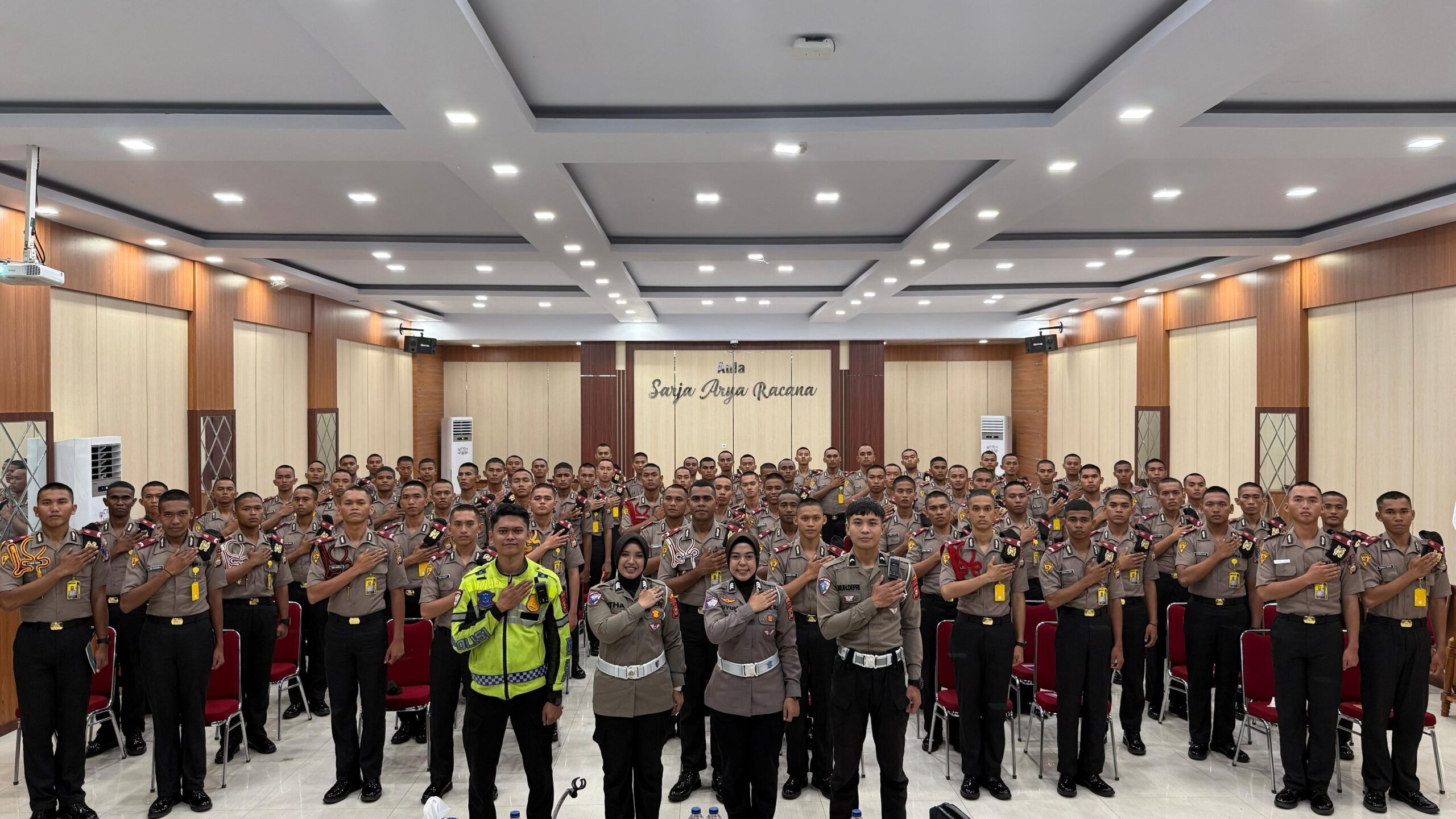 BONE, TRIBUNBONEONLINE.COM–Guna menambah wawasan dan pengetahuan tentang lalu lintas, Satlantas Polres Bone memerikan materi tentang fungsi teknis lalu lintas kepada Siswa Diktuk Bintara Brimob 2026 yang sedang melaksanakan Latihan Kerja di Polres Bone, Senin (27/4/2026).