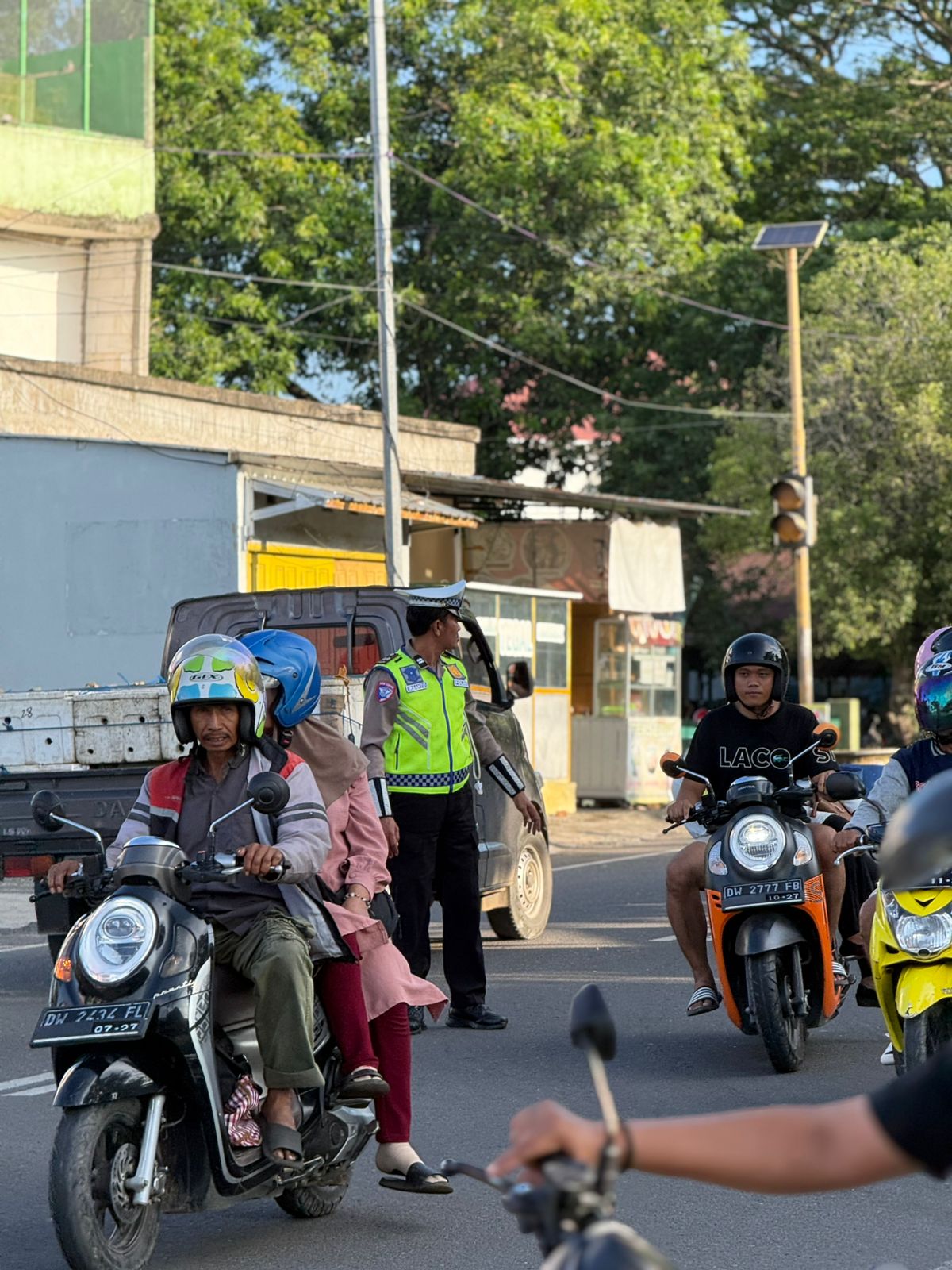 Petugas terlihat sigap membantu penyeberangan pelajar, mengurai arus kendaraan, serta memberikan imbauan kepada pengendara agar selalu tertib dan mematuhi peraturan lalu lintas.